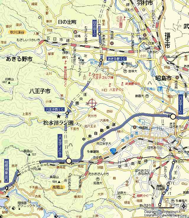 中央道新宿方面から圏央道-八王子西インタ-下車-高尾方面-100m先信号右折-200m先右折-直進600m左側(IC出口から約5分)